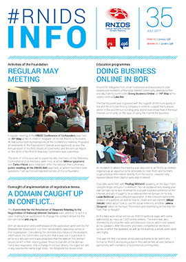 Issue 35 of our corporate newsletter, RNIDS Info, brings an overview of events in RNIDS, in the local Internet community and worldwide during 2017 Q2. The regular May meeting of the RNIDS Conference of Co-founders was held, and a series of educational events to be organised across Serbia kicked off in Bor.