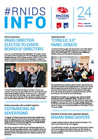 Issue 24 of the RNIDS INFO corporate newsletter brings an overview of events at RNIDS and in the local and global Internet community in the first quarter of 2015. The April issue was for the first time produced within the RNIDS Organizational framework, so all of the articles are marked accordingly.