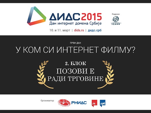 Program Dana internet domena Srbije 10. marta je tradicionalno podeljen u tri tematska bloka, sa oko tridesetak relevantnih sagovornika i moderatora iz zemlje i sveta. Drugi blok pod nazivom "Pozovi E radi trgovine" posvećen je e-Trgovini, kroz sve njene aspekte: pravno-finansijski, promotivni, logistički i softverski. Učesnici u panel diskusiji su domaći stručnjaci iz ove oblasti, koji će prezentovati konkretna rešenja iz prakse i iskustva iz sopstvenih onlajn projekata, a moderator bloka je Miloš Petrović, veb preduzetnik i bloger.