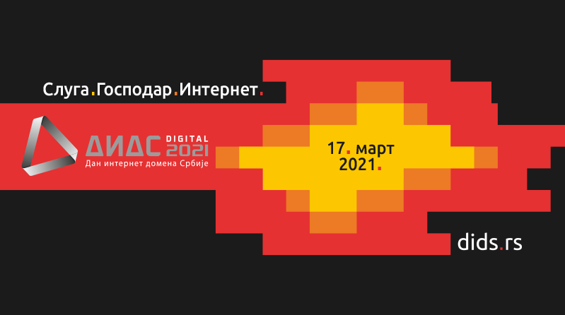 Jedna od najpoznatijih konferencija posvećenih internetu, koju od 2010. organizuje „Registar nacionalnog internet domena Srbije“ (RNIDS), prvi put će u potpunosti biti realizovana onlajn. Ove godine slogan DIDS konferencije nastoji da u tri reči sažme ulogu interneta u proteklih godinu dana: “Sluga. Gospodar. Internet.” Pratite nas uživo 17. marta od 10 časova na dids.rs, kada ćemo, uz pomoć izvanrednih predavača i panelista, razmotriti da li je privreda mogla imati boljeg slugu od interneta tokom pandemije, ali i zapitati se da li je internet nepovratno zagospodario praktično svim aspektima našeg života.